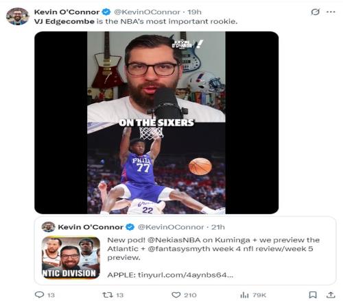 NBA記者凱文-奧康納則評(píng)價(jià)埃奇庫(kù)姆會(huì)成為NBA最具影響力的球員之一。