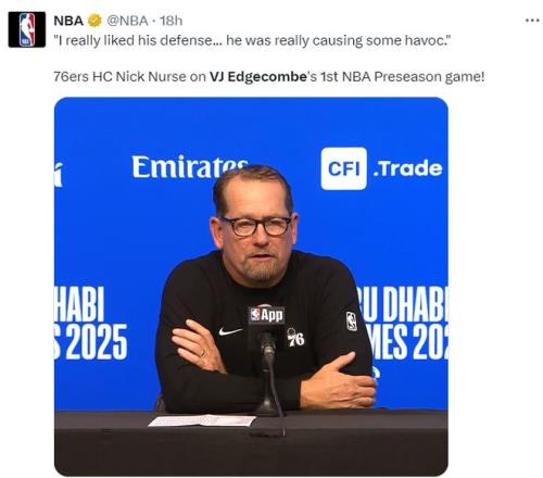 納斯在賽后談到埃奇庫(kù)姆:我非常喜歡他在防守端的表現(xiàn),他確實(shí)制造了不少麻煩,他對(duì)抗經(jīng)驗(yàn)豐富球員的方式讓我印象深刻。(幾天前的媒體日,納斯還曾表示埃奇庫(kù)姆在新賽季會(huì)有比賽客串控衛(wèi),他有些比賽也可以打小前鋒)