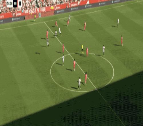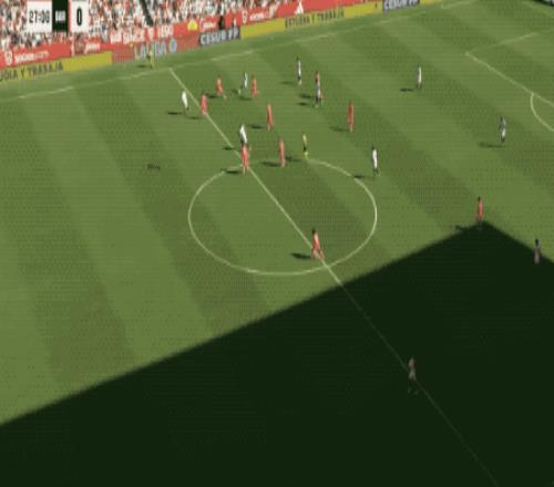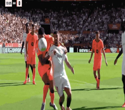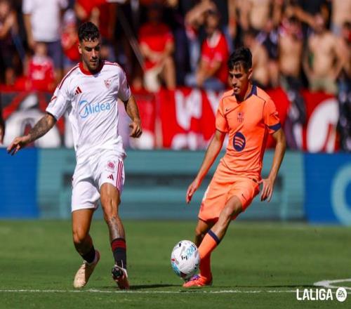 第22分鐘,塞維利亞在巴薩半場連續(xù)傳球,門迪后點(diǎn)的射門稍稍偏出。