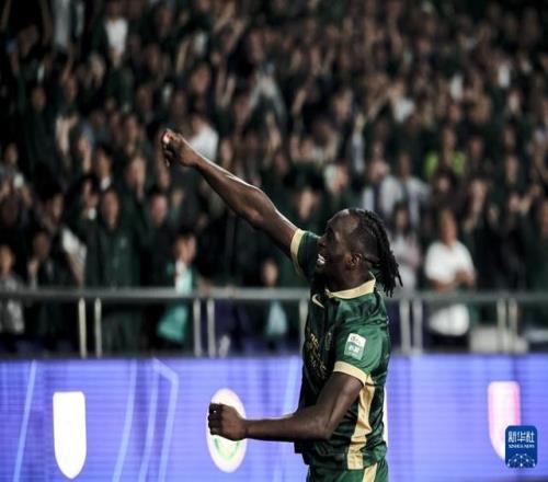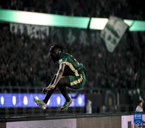 10月18日,浙江俱樂(lè)部綠城隊(duì)球員奧烏蘇在進(jìn)球后慶祝。新華社記者 江漢 攝