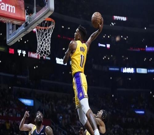 但無奈的是,由于始終無法保持穩(wěn)當?shù)耐渡湫?,所以?0-21結束后,新秀合同到期的他并未能夠得到續(xù)約。好在只有23歲,所以湖人隊也是給到了他一份1年179萬美元的底薪,將他帶到了湖人隊。