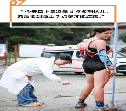 莊彬彬是本次賽事的醫(yī)療救援人員之一。她昨天剛上完夜班,今天又接著加班參與保障。凌晨4點(diǎn)多,她和同事們就已在救護(hù)車上隨時(shí)待命。這已不是她第一次保障越野賽,去年的比賽中,她救助了很多擦傷和肌肉拉傷的選手。