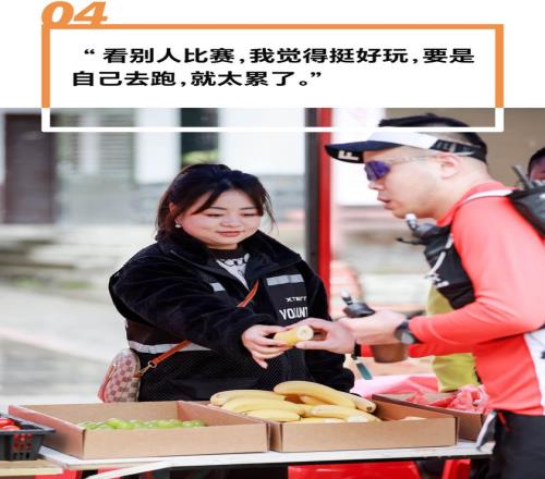 小唐是賽道補(bǔ)給站的志愿者,這是她第一次參加XTERRA的活動(dòng)。她和同伴都是附近村子里的本地人,平時(shí)也爬山。正因?yàn)槭潜镜厝?,她們深知賽道的難度,“全是山路,跑下來是非常辛苦的”,所以非常佩服能堅(jiān)持下來的選手。小唐平時(shí)從事旅游業(yè),這次是剛好有時(shí)間來體驗(yàn)志愿者服務(wù)。她覺得志愿者工作并不辛苦,而最讓她激動(dòng)的瞬間,是看到跑在第一、二、三名的選手近距離經(jīng)過站點(diǎn),“像是看到了明星一樣?!?/p>