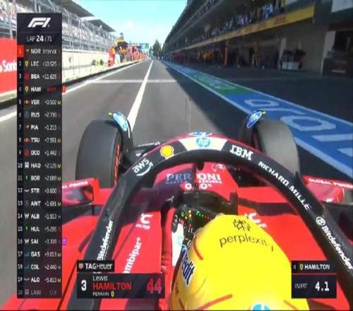 第二十四圈:漢密爾頓進(jìn)站接受10秒罰時(shí)并換上中性胎