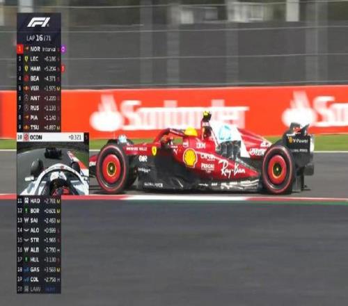 第七十圈:塞恩斯的賽車停在賽道內(nèi),虛擬安全車出動