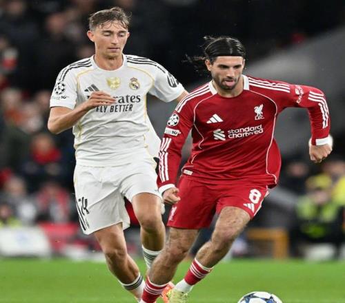 皇馬可以說是利物浦歐戰(zhàn)的苦主,雙方11次直接對話,銀河戰(zhàn)艦取得了7勝1平3負的壓倒性優(yōu)勢,不過上賽季第一階段的強強對話中,利物浦2-0笑到了最后,渴望延續(xù)強勢發(fā)揮的斯洛特,此役沿用了4231的陣型,馬馬爾達什維利出任首發(fā)門將,羅伯遜、范迪克、科納特和布拉德利構(gòu)筑后防,雙后腰則是麥卡利斯特和赫拉芬貝赫,維爾茨、索博斯洛伊和薩拉赫坐鎮(zhèn)中場,單箭頭則是?;倏恕?/p>