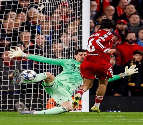 第28分鐘利物浦創(chuàng)造出了一次極具威脅的反擊機會,維爾茨右路橫敲,索博斯洛伊跟進的推射被庫爾圖瓦神撲化解,半場比賽結(jié)束之前,非常活躍的索博斯洛伊大禁區(qū)外開炮,庫爾圖瓦單掌將皮球擋出底線,靠著門將的神勇發(fā)揮,皇馬艱難帶著0-0的比分回到了更衣室。