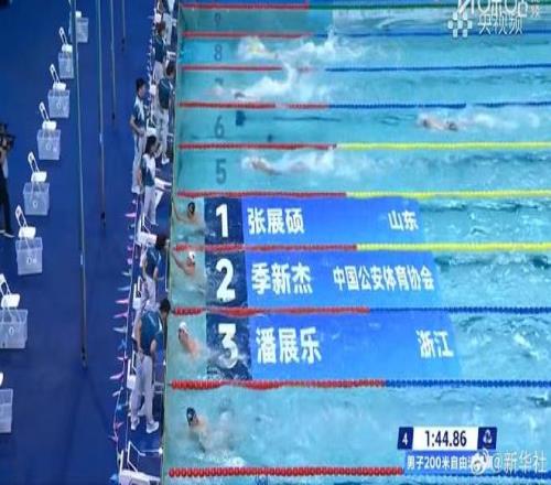 這個項目的亞洲紀錄由孫楊保持的1分44秒39,半決賽中張展碩延續(xù)優(yōu)異表現(xiàn),游出1分46秒89,位列所有選手的第一位。