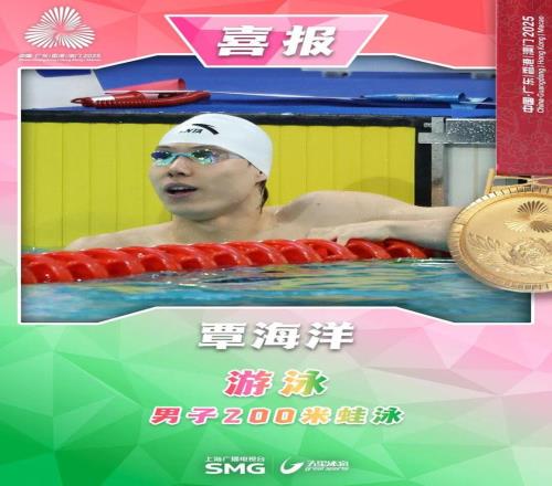 喜報!覃海洋獲得200米蛙泳冠軍!