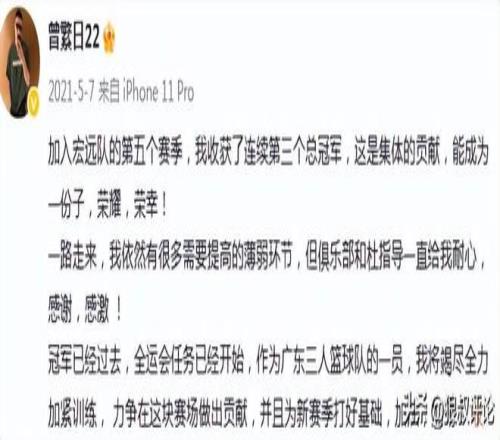 根據(jù)此前的媒體報(bào)道,同曦隊(duì)官宣曾繁日離隊(duì),并放棄收取培養(yǎng)費(fèi)、讓他成為真正意義上的自由球員。