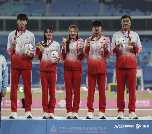 11月16日晚,十五運會田徑比賽4×400米混合接力舉行頒獎儀式。在前一晚的比賽中,由梁寶棠、孔瑩鎣、何宇、莫家蝶組成的廣東隊以0.12秒的優(yōu)勢力壓四川隊獲得冠軍。這是廣東田徑隊在十五運會上取得的首枚金牌。