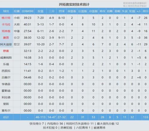 獨(dú)行俠狀元弗拉格首發(fā)出戰(zhàn)37分鐘,16投9中,三分3中1,罰球3中2,拿到21分8籃板5助攻1搶斷2蓋帽,正負(fù)值+10全場(chǎng)第三??巳R替補(bǔ)出戰(zhàn)25分鐘,投籃16中7,三分11中5,拿到19分3籃板2助攻1蓋帽,正負(fù)值+11并列全場(chǎng)最高。