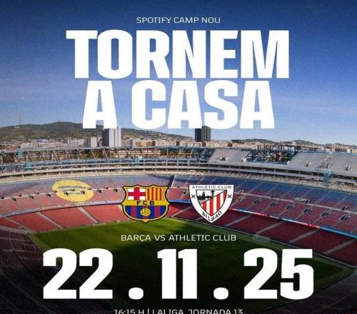 巴塞羅那俱樂(lè)部已于今日(2025年11月17日)通過(guò)官方社交媒體宣布:球隊(duì)將于本周六(11月22日) 在翻新后的 Spotify 諾坎普球場(chǎng)迎戰(zhàn)畢爾巴鄂競(jìng)技,這標(biāo)志著紅藍(lán)軍團(tuán)在闊別主場(chǎng) 915 天 后,終于重返夢(mèng)開始的地方。