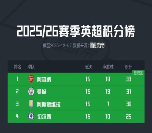 阿斯頓維拉目前則是以30分位居積分榜第三名,距離阿森納也只有3分的差距,比曼城少一分,而切爾西在與伯恩茅斯戰(zhàn)平后積25分,比維拉少5分。