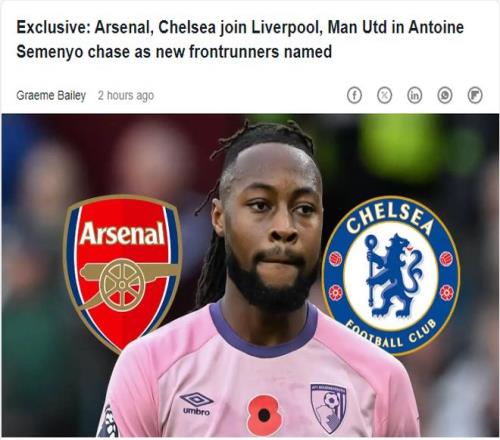 今年夏天,熱刺曾錯失埃澤(轉(zhuǎn)投阿森納),如今同樣的劇情可能在塞梅尼奧身上重演?,F(xiàn)階段,英超BIG6之中除了熱刺被拒之外,其余5家俱樂部都在追逐塞梅尼奧。他的解約金為6500萬英鎊,僅在冬窗初期有效;到明年夏天將降至5000萬鎊,但預(yù)計他不會在伯恩茅斯留到那時。