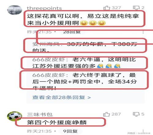 龐崢麟的炸裂表現(xiàn),網友們更是好評如潮?!?0萬的年薪,干300萬的活?!保弧袄狭1?,這明明比江蘇外援還要強的多?!保弧斑@探花真可以啊,易立這是純純拿來當小外援用啊”;“龐老6讓我看到胡雪峰的影子?!?;“目前國內一號位,我說的,沒有誰技術比他好,我說的,包括趙睿 孫明輝 趙繼偉 ……”。