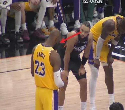 詹姆斯罰球期間狄龍主動(dòng)上前擊掌 被老詹無奈推開