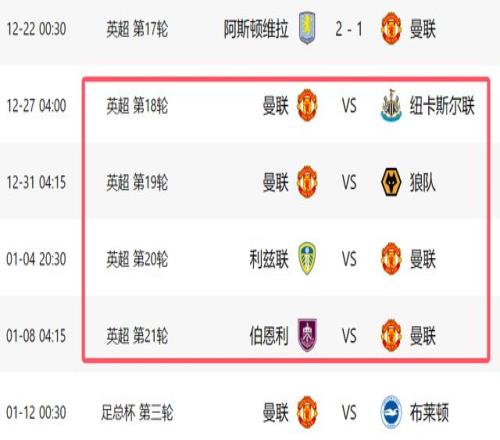 曼聯(lián)12天4戰(zhàn)!對紐卡+3支保級隊,全取12分有望進前四爭歐冠席位