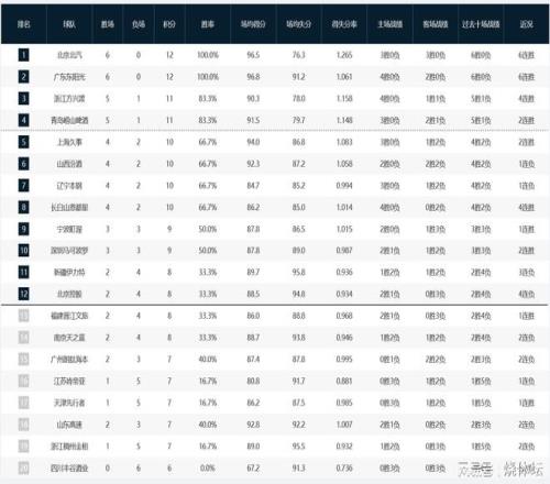 CBA積分榜:北京、廣東皆6連勝+天津首勝,山東、浙江排名靠后