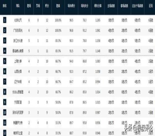 CBA最新排名:京粵6連勝爭(zhēng)第1新疆魔鬼主場(chǎng)2連敗僅1隊(duì)0勝6負(fù)