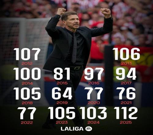 北京時間12月26日,來自西甲官方的統(tǒng)計指出,馬德里競技在2025年里各項賽事一共打進(jìn)了多達(dá)112粒進(jìn)球,這創(chuàng)造了自西蒙尼2011年12月接手球隊以來,床單軍團(tuán)自然年正式比賽的進(jìn)球數(shù)紀(jì)錄。