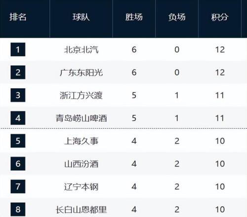 CBA六輪排名!京粵占前2,遼寧下滑第7,吉林青島黑馬,魯浙倒數