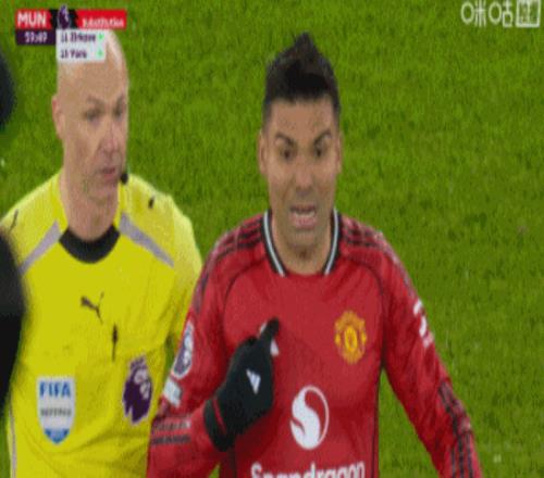 第61分鐘,卡塞米羅對自己被換下表示不解