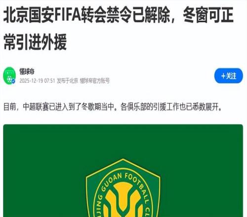 好消息!國安完成中超債務(wù)清償,聯(lián)賽準入無憂,引援已悄悄落地