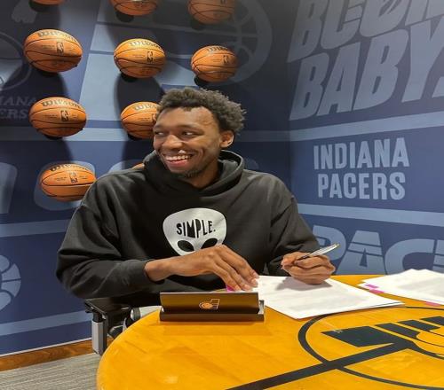 將時間拉回2020年選秀夜,那本是懷斯曼人生中最高光的時刻。金州勇士用寶貴的榜眼簽選中了這位身高2米13、臂展2米28的天才內線。而有趣的是,當時為勇士試訓、并且一心向往勇士的,是另一位年輕人——泰雷斯·哈利伯頓。