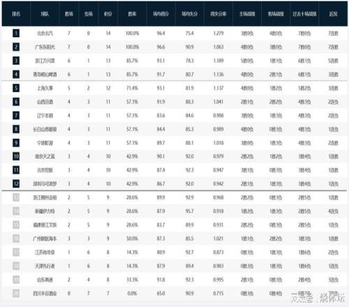 CBA排名榜:北京、廣東雙雙7連勝,山東3連敗+新疆4連敗皆倒數(shù)