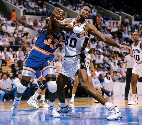 而且更令人動(dòng)容的是,在季后賽中,他一直都帶傷出場(chǎng),雖然能力有所下滑,但卻甘愿化身藍(lán)領(lǐng),輔佐阿蘭·休斯頓、拉特里爾·斯普雷維爾的雙槍組合,場(chǎng)均仍有13.1分、8.7個(gè)籃板的貢獻(xiàn)。而尼克斯隊(duì)也是上演了驚人的黑八奇跡,一路打進(jìn)了總決賽。但這一次,尤因的對(duì)手是更為年輕的蒂姆·鄧肯,和同為四大中鋒的大衛(wèi)·羅賓遜。
