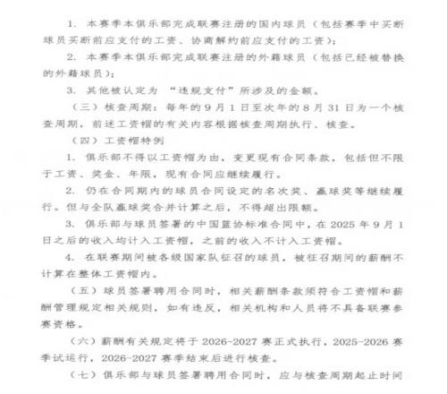 這次的工資帽制度,在本賽季是試行階段,下賽季,也就是2026-2027賽季將正式運行。我們來看一下此次規(guī)定的幾項具體細則:
