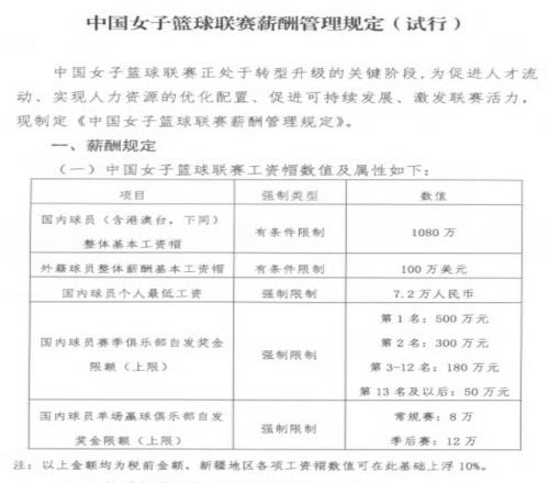 1,國內(nèi)球員,包含港澳臺球員,加在一起的整體工資不得超過1080萬人民幣。