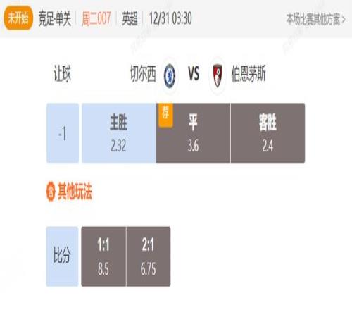 競(jìng)足 周二007英超切爾西VS伯恩茅斯