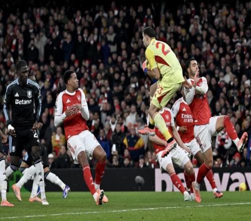 阿森納在慶祝,維拉在抗議,但當(dāng)值主裁達(dá)倫在觀看完視頻回放后確認(rèn)進(jìn)球有效。