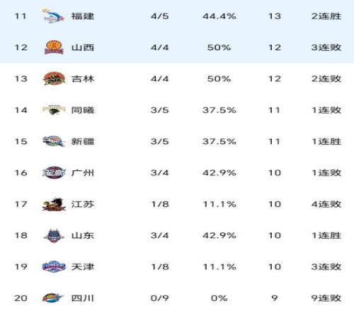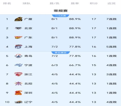 CBA再無全勝球隊!廣東31分慘敗北京,最新積分榜:衛(wèi)冕冠軍登頂