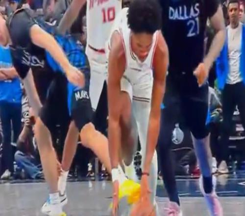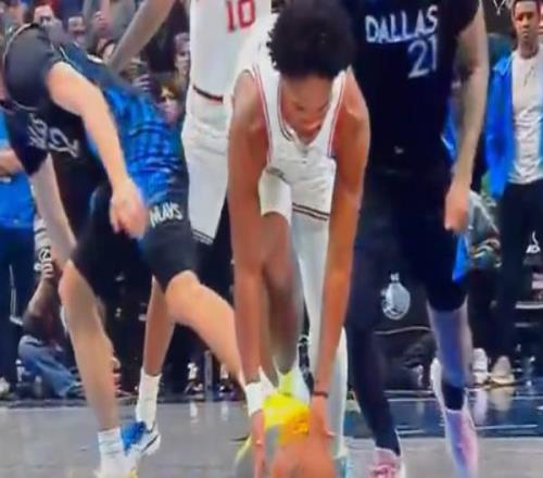在比賽剛剛開始的時候,獨行俠隊由弗拉格控球,結(jié)果造到對位防守的阿門-湯普森面斷,當阿門拿球準備快攻時,弗拉格伸腳絆倒了阿門,被吹罰犯規(guī)。