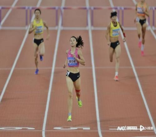 莫家蝶在十五運會女子400米欄決賽中以絕對優(yōu)勢奪冠。南都N視頻記者 黎湛均攝