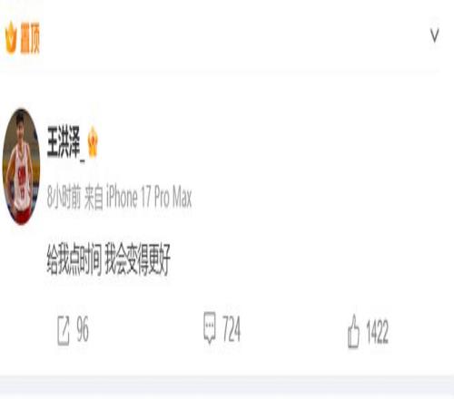 在本場(chǎng)比賽結(jié)束后,一向低調(diào)的王洪澤在賽后發(fā)了這么一條動(dòng)態(tài):給我點(diǎn)時(shí)間,我會(huì)變得更好。評(píng)論區(qū)下方有大量球迷向他表達(dá)了鼓勵(lì),王洪澤幾乎就不怎么玩社交媒體,這次他之所以會(huì)罕見(jiàn)的向球迷喊話,主要還是他近期的表現(xiàn)實(shí)在太糟糕了,有點(diǎn)辜負(fù)教練、隊(duì)友、球迷的期待。