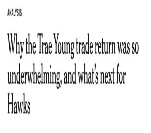 然而,即便早在老鷹試圖拆散特雷-楊與德章泰-穆雷這對(duì)毫無(wú)化學(xué)反應(yīng)的組合時(shí),聯(lián)盟中就沒有任何球隊(duì)愿意為得到楊而向老鷹送出重磅籌碼。楊固然是聯(lián)盟中最具活力的進(jìn)攻核心之一,但其他球隊(duì)對(duì)他的興趣始終不溫不火。