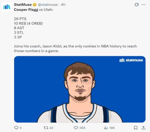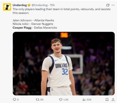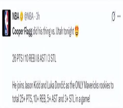 2.他成為基德、東契奇后獨(dú)行俠隊(duì)史第三位25+10+5+3搶斷的新秀;