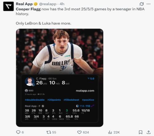3.弗拉格新秀賽季拿到第三次單場(chǎng)25+5+5,僅次于詹姆斯、東契奇;
