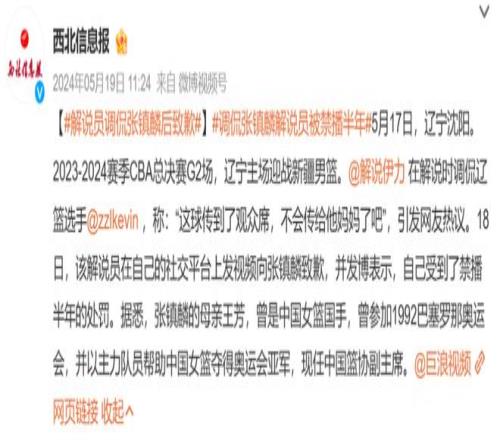 實(shí)際上這種事情也不止發(fā)生過一次,之前還是咪咕承接CBA網(wǎng)絡(luò)直播的時候,也有一些解說嘲諷張鎮(zhèn)麟全靠他的母親王芳上位,因此被遼寧球迷投訴并且丟了工作。