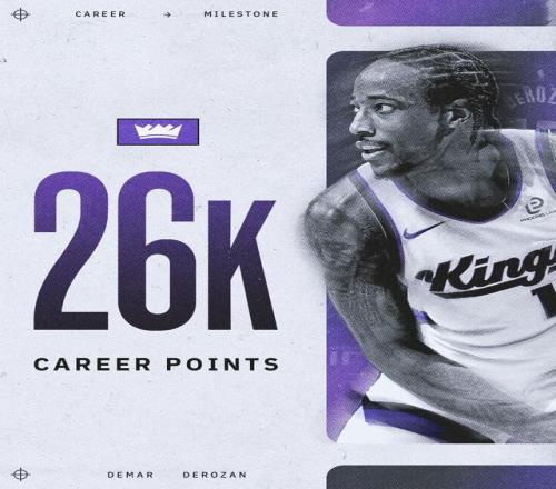 聯(lián)盟歷史第23人!德羅贊生涯總得分達(dá)成26000分里程碑