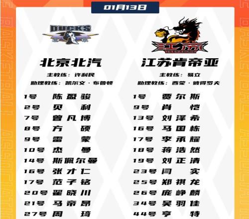 北京過去兩場連輸山東與深圳遭遇2連敗,江蘇過去9場遭遇9連敗,本賽季首次交鋒北京客場84-74戰(zhàn)勝江蘇。本場首節(jié)比賽,周琦開局暴扣與三分接連得分,還助攻貝利上籃命中,引領北京一波10-2攻勢打停江蘇。亨特隔扣周琦引發(fā)摩擦,亨特連續(xù)沖擊內線得分追到僅差1分,杰曼與陳盈駿引領一波6-0攻勢擴大17-10領先。雙方接連沖擊內線各得4分,杰曼連投帶罰再得4分,首節(jié)比賽結束北京擴大23-14領先江蘇9分優(yōu)勢。