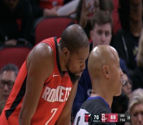 次節(jié)剛剛開始僅僅一分鐘,火箭的防守出現(xiàn)了很大的問題,被公牛直接追平,烏度卡憤怒喊出暫停,質(zhì)疑大家的態(tài)度。暫?;貋?,杜蘭特失誤,隨后又進(jìn)攻犯規(guī),局面瞬間變得被動。申京回到場上,勾手、暴扣追平比分。雙方你來我往,比分交替領(lǐng)先,半場比賽結(jié)束,火箭落后了3分。