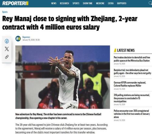 第三個(gè),多家外媒爆料,馬納伊是浙江隊(duì)冬窗最重要的引援之一,合同為期2年,年薪高達(dá)400萬歐元,外加獎(jiǎng)金,這也讓他成為阿爾巴尼亞足球歷史上收入最高的球員。不過,也有媒體報(bào)道,他是2年總收入400萬歐元,這也更符合中超外援稅前300萬歐的限薪令要求。