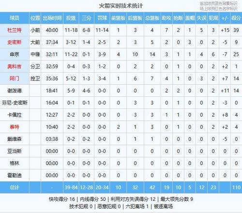 杜蘭特39分4板7助2斷、申京25分14板3助、阿門14分7板4助、謝潑德14分2助2斷、史密斯9分5板2助3帽、卡佩拉4分3板1助、泰特4分3板、奧科吉1分2板、芬尼-史密斯3板、戴維森1板