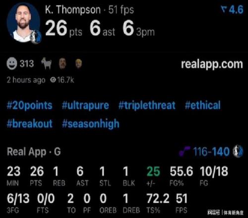 湯普森這場創(chuàng)造里程碑的比賽,那可真是精彩絕倫!在獨(dú)行俠144 - 122大勝爵士的這場“大戰(zhàn)”里,投籃18次,有10次穩(wěn)穩(wěn)命中,三分球更是厲害,13次出手,6次精準(zhǔn)入網(wǎng),輕輕松松就砍下26分,還順便送出6次助攻,把隊(duì)友們也喂得飽飽的,厲害吧!
