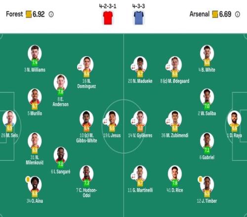 森林首發(fā):26-塞爾斯、5-穆里略、31-米倫科維奇、34-埃納、6-桑加雷、8-埃利奧特-安德森、10-吉布斯-懷特、16-多明戈斯(89'21-哈欽森)、7-奧多伊、19-伊戈?duì)?熱蘇斯(76'14-恩多耶)、3-內(nèi)科-威廉姆斯